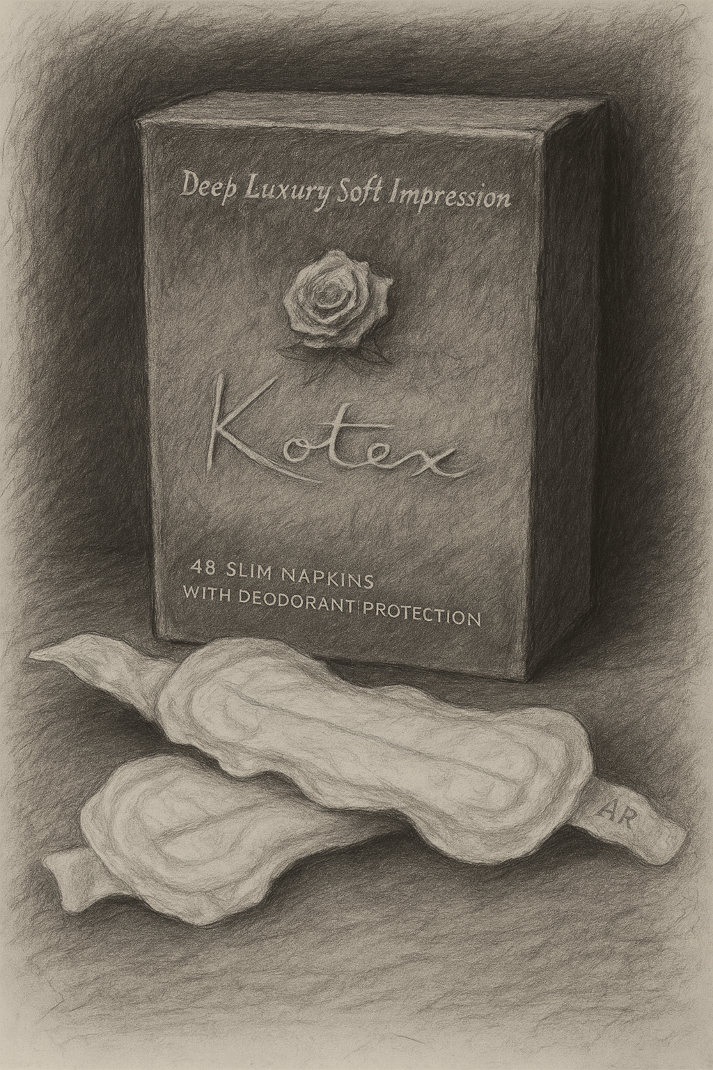 I couldn’t work the pad—those weird tails, the way that thing crawled inside my panties—how to keep it from falling out? Blood running down my leg.